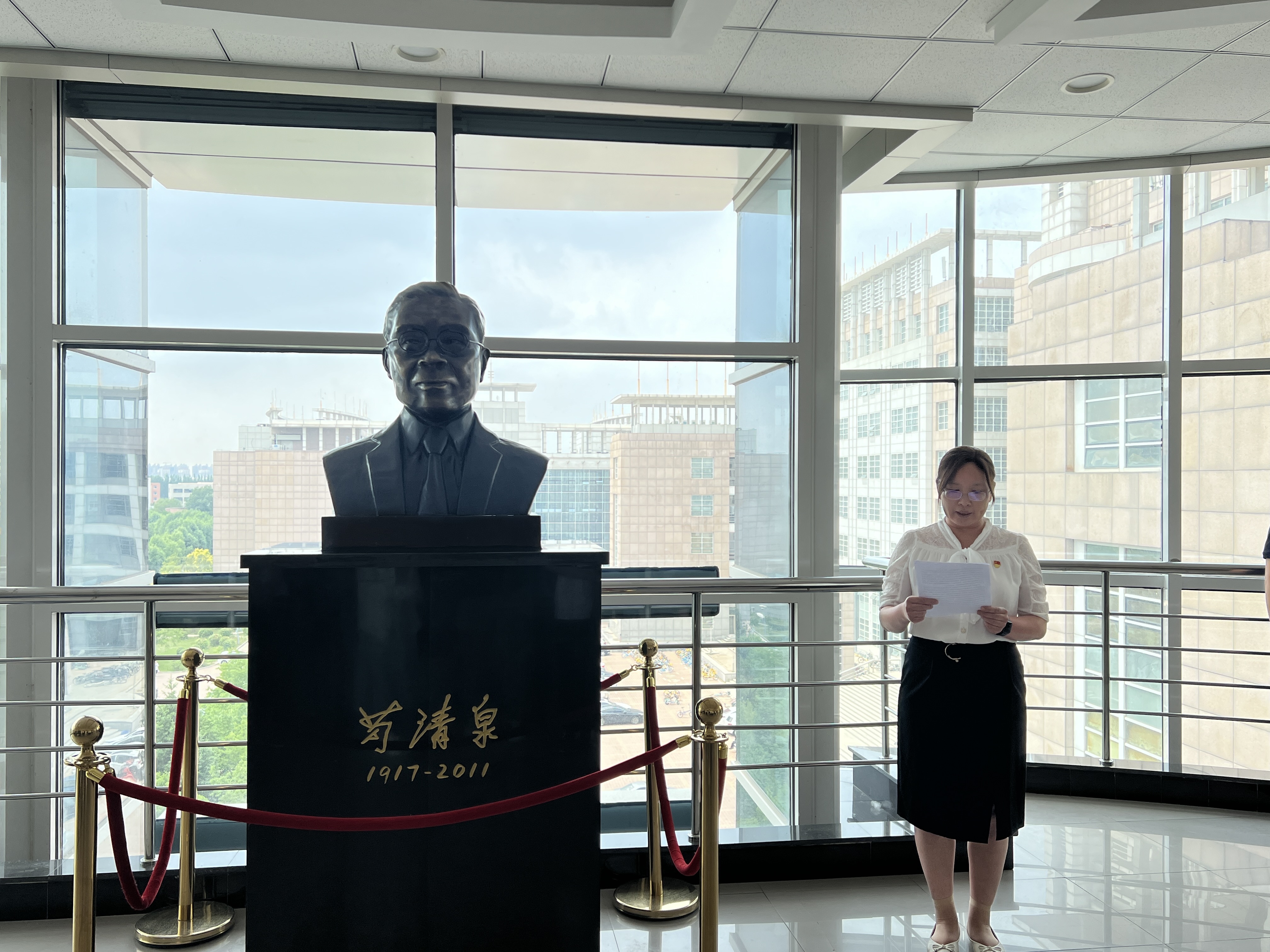 首先,学院带领毕业生同学们来到唐敖庆楼C区5楼苟清泉先生的雕像前,吉林大学原子与分子物理研究所陈怡副教授深情地讲述了苟先生对科研执着追求和对学生悉心教导的事迹,引发在场同学们对学术精神的深思和思考。讲述结束后,同学们对苟先生的雕像进行了祭扫。同学们又来到位于唐敖庆楼B区3楼的吴世枢院士雕像前,学院关心下一代工作委员会委员离退休老教师刘广州与大家共同回忆了吴先生在教学和科研中取得的卓越成就,及他对学生的深刻影响。通过讲述吴老先生的事迹,刘广州老师呼吁同学们要继承吴先生的学术精神,努力追求卓越。讲述结束后,同学们对吴先生的雕像进行了祭扫。