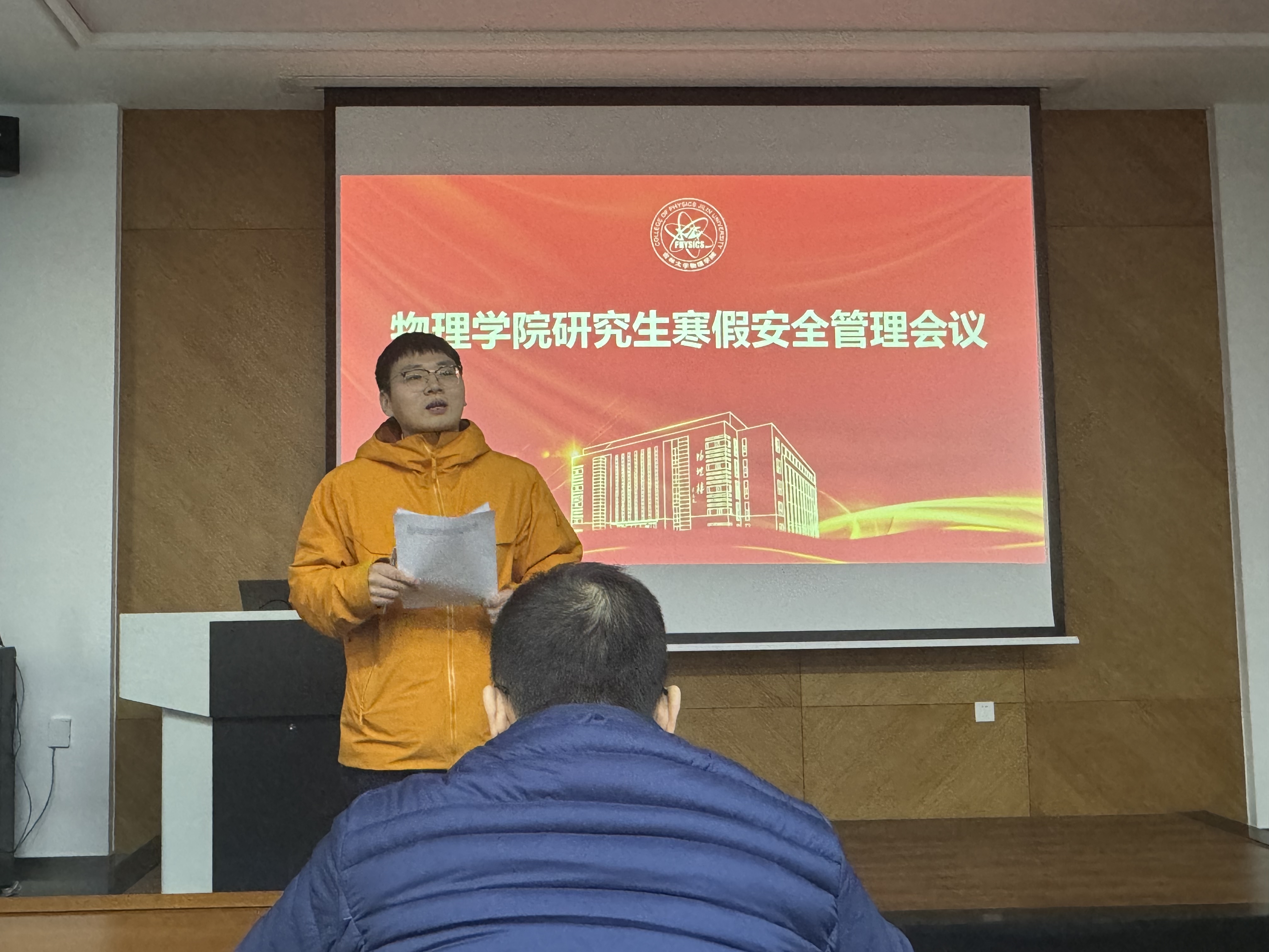 为切实加强寒假期间留校研究生的教育和管理,提高研究生的安全防范意识,确保留校研究生的健康安全,1月29日下午,学院于物理楼333会议室举办寒假留校研究生安全管理会议。会议由太阳成集团tyc7111cc党委副书记唐宗明主持,研究生辅导员曹鹏、研究生秘书于津强及留校研究生干部参会。