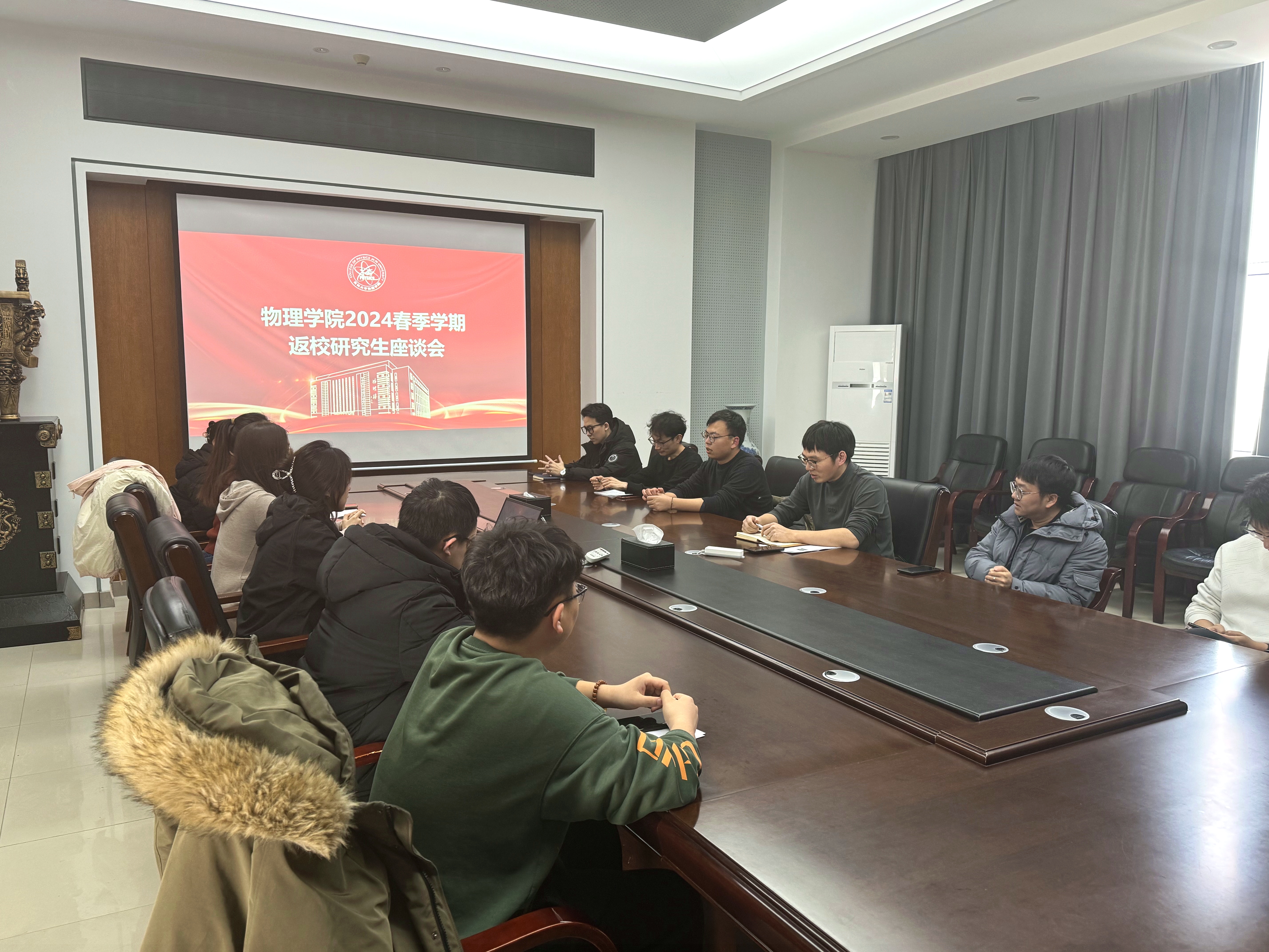 为进一步掌握研究生寒假期间及返校后的思想动态,增强新学期研究生思想政治教育工作的针对性和实效性,2024年2月29日,太阳成集团tyc7111cc在物理楼301会议室召开2024年春季学期返校研究生座谈会。各年级博士、硕士研究生代表12人参加,会议由研究生辅导员曹鹏主持。