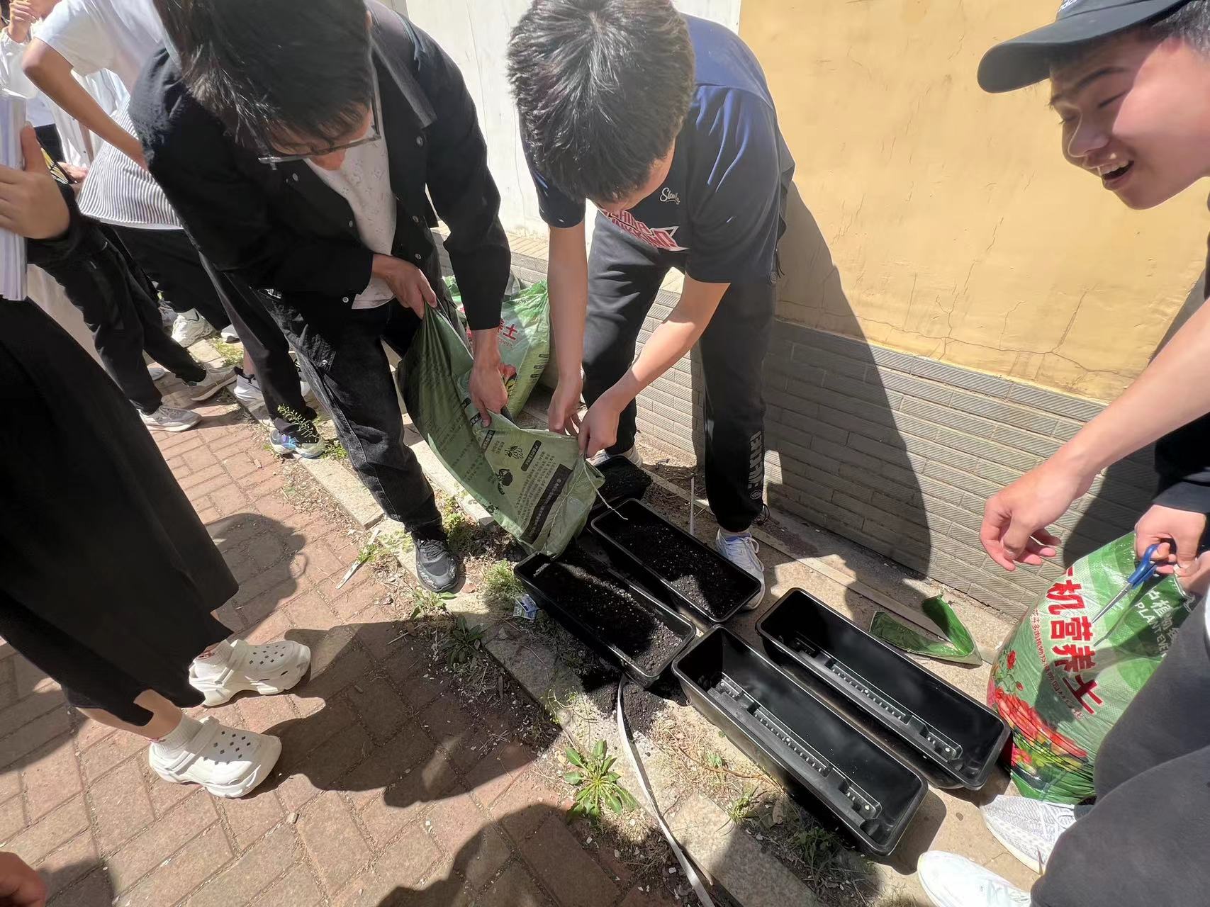 5月8日中午,学院组织开展“认领一块地”劳动教育实践活动,在学院大力支持下在物理楼规定区域内开展蔬菜种植活动。活动开始前首先以班级为单位划分小组,每个小组认领一个育苗盆,在学院老师的带领下进入规定区域进行蔬菜种植。到达指定区域后,学生们首先对区域内的杂物和杂草进行清扫整理,之后进入播种环节,学生首先在辅导员老师处领取每组的种子和肥料,之后将种子播撒在每组的育苗盆内,浇水施肥,在育苗盆外侧张贴分组标签,最后同学们整理好劳动工具,将整个劳动过程中产生的垃圾扔到指定位置,有序离开划定区域。