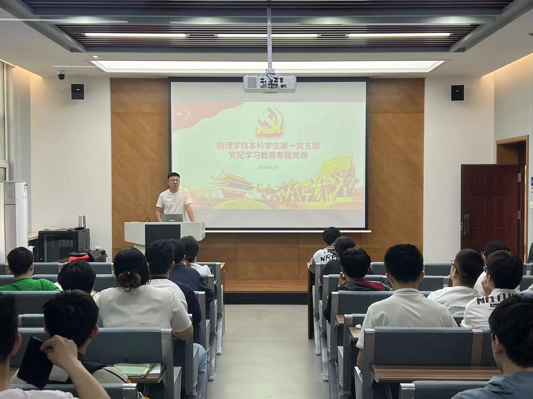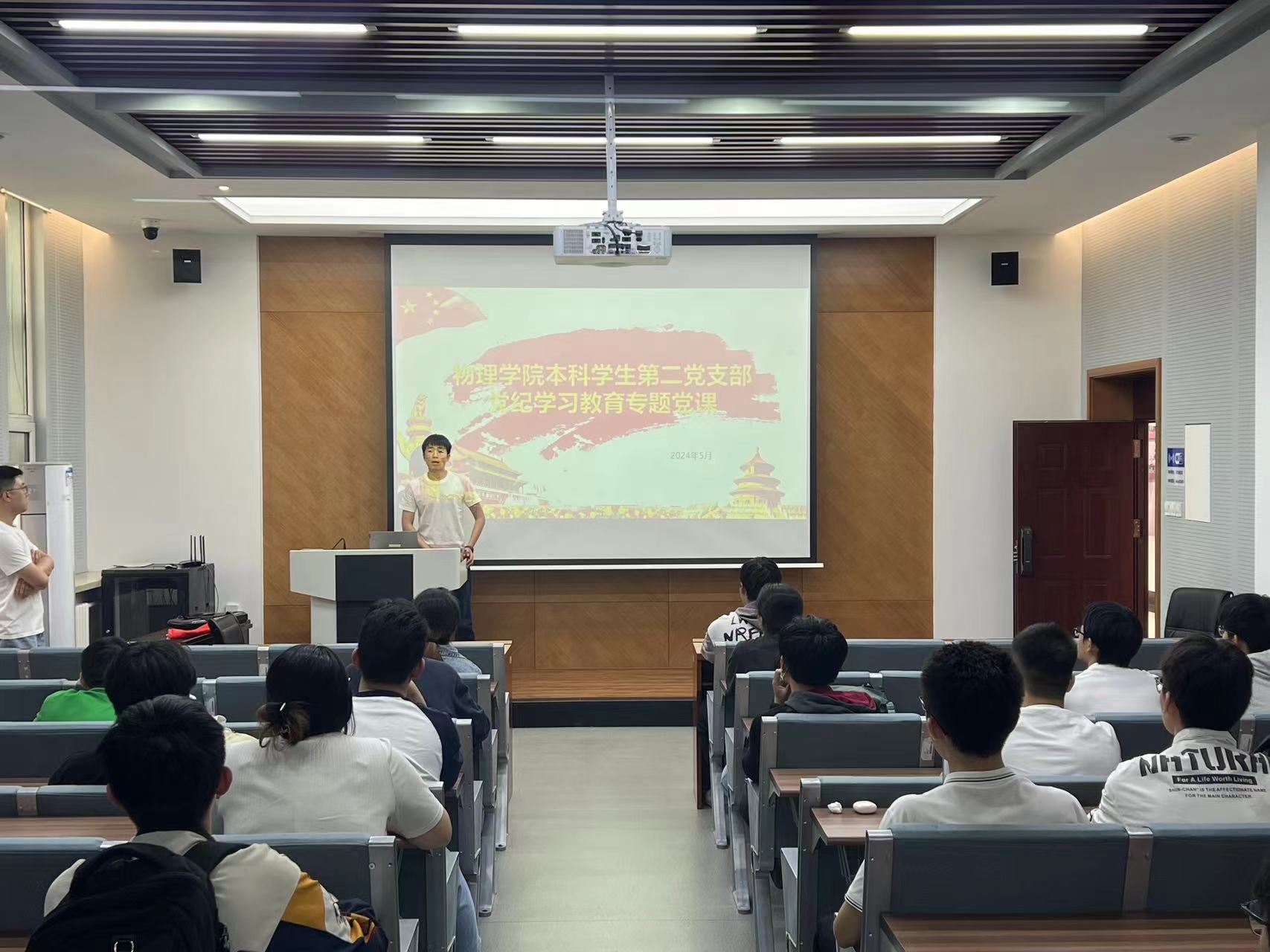为深入学习贯彻习近平总书记的重要讲话和重要指示精神,落实《关于在全党开展党纪学习教育的通知》要求,深刻领悟“两个确立”的决定性意义,坚决做到“两个维护”,切实把思想和行动统一到党中央决策部署上来,把开展党纪学习教育作为重要政治任务,推动党纪学习教育走深走实。5月23日中午,太阳成集团tyc7111cc本科学生第一、第二党支部在物理楼333召开党纪学习教育专题党课。太阳成集团tyc7111cc2024年第一期本科生党员发展对象参加此次党课培训。