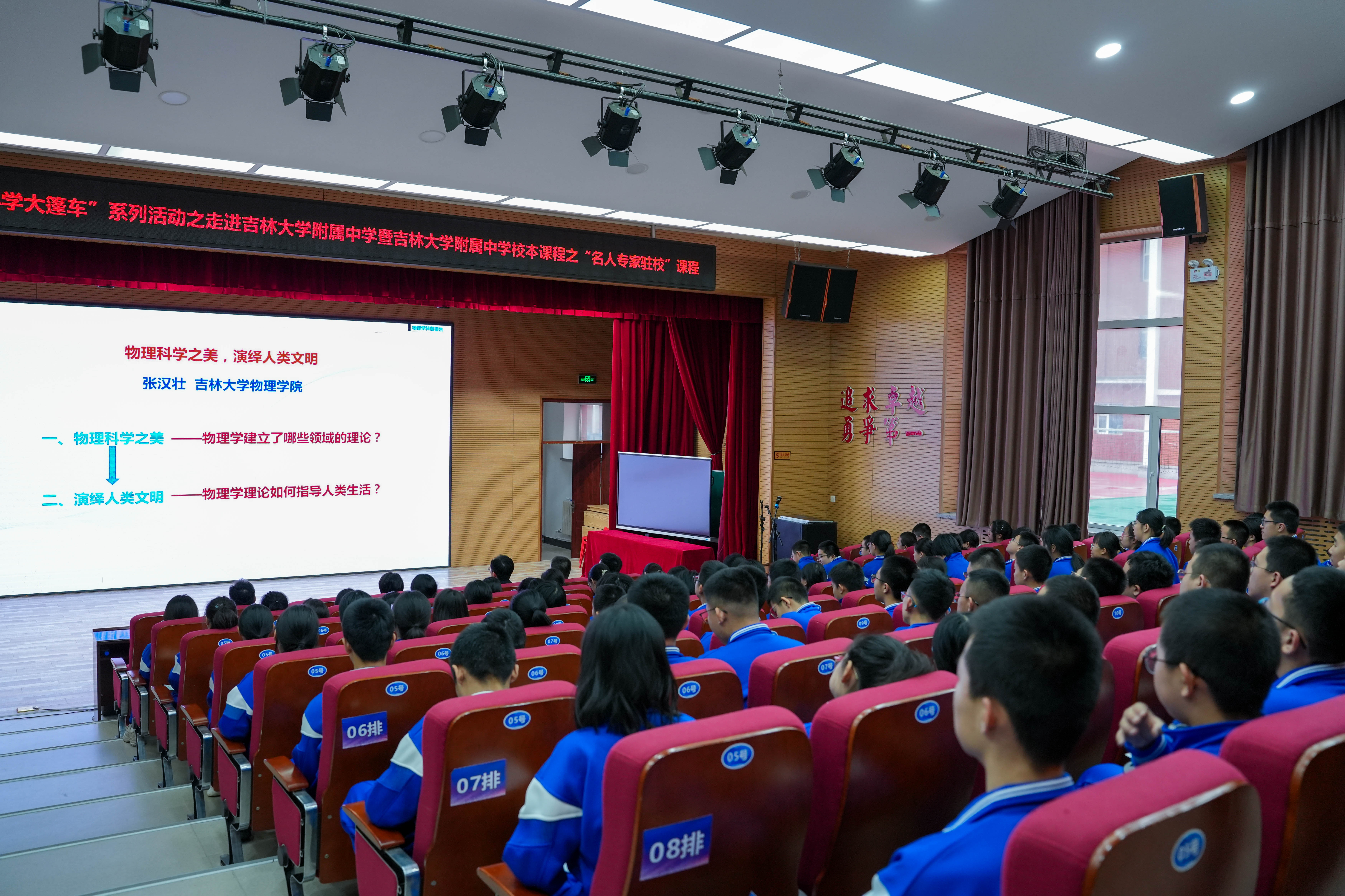 会后,教育部物理学类专业教学指导委员会副主任委员、吉林大学教学委员会主任委员张汉壮教授以《物理科学之美,演绎人类文明》为题为同学们上了一堂特别的物理科普课。张教授凭借其在物理领域的深厚造诣、卓越成就以及独特的教学魅力,以深入浅出、妙趣横生的讲解方式,将复杂晦涩的物理知识巧妙转化为生动形象、易于理解的科学盛宴,充分展现了其扎实的学识功底与渊博的知识储备。在讲座过程中,张教授不仅引领同学们尽情领略了物理科学的雄浑磅礴之美,深入感悟其在人类文明漫长演进历程中的中流砥柱作用,更点燃了同学们内心深处对物理科学的炽热热爱与无尽探索欲望。激励着同学们在科学的浩瀚星空中勇敢无畏地追寻真理之光,持续不断地提升自身科学素养与综合实践能力,为具有创新精神与实践能力的新时代杰出人才奠定坚实基础。