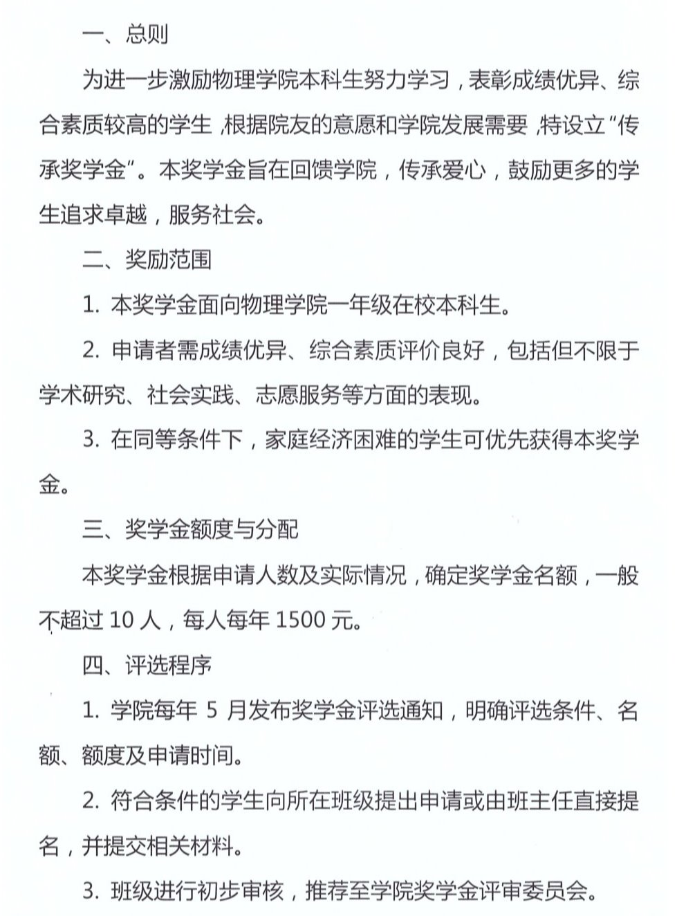 太阳成集团tyc7111cc“传承奖学金”评选办法
